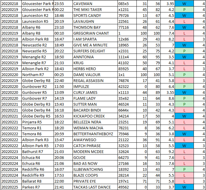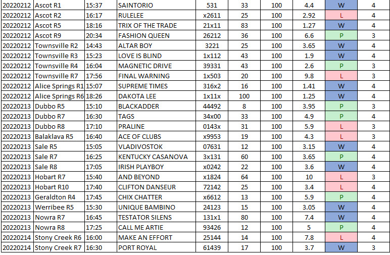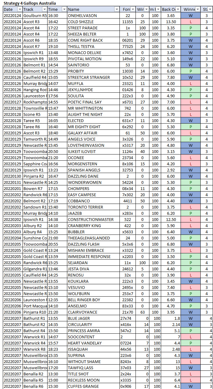Strategy 4 Gallops Australia. (added 7th Feb)
