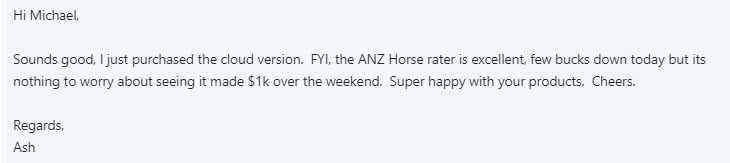 But we have a whole lot more power in it, if you are serious about making money with Australian and New Zealand Gallops and Harness, then the research part is a MUST HAVE.