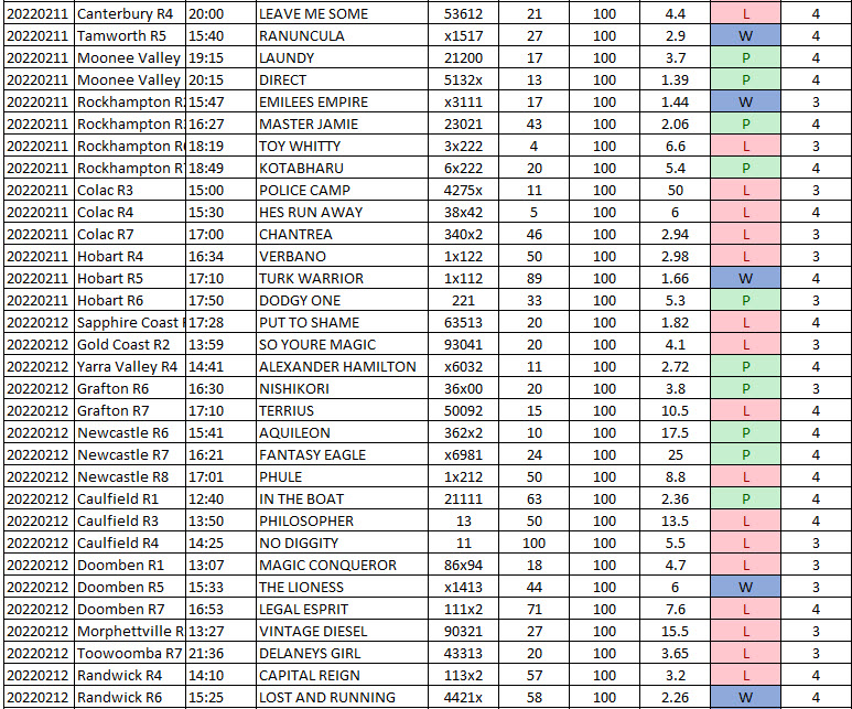 This will build a into a nice database you can start accumulating into a powerful sortable excel spreadsheet for both gallops and harness races.